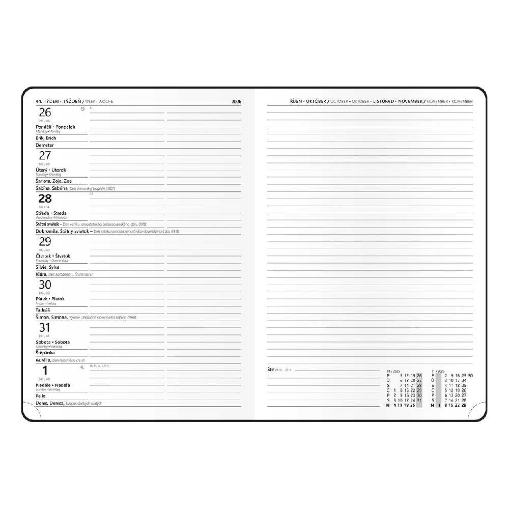 ročný plánovací kalendár CZ/SK 2026, miesto na poznámky.