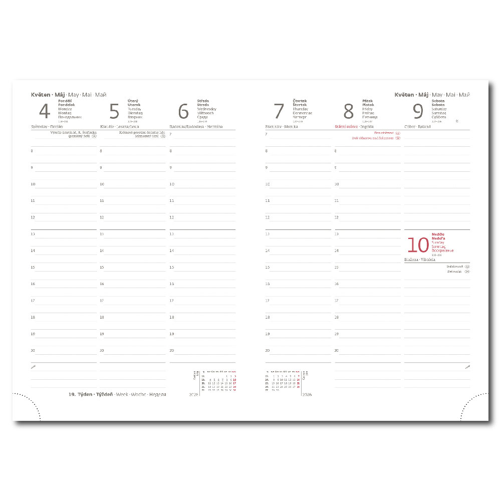 medzinárodné sviatky, ročný výhľad, týždenný layout, adresár,