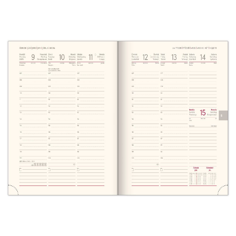 Diár obsahuje: miesto pre osobné údaje, mesačné plánov