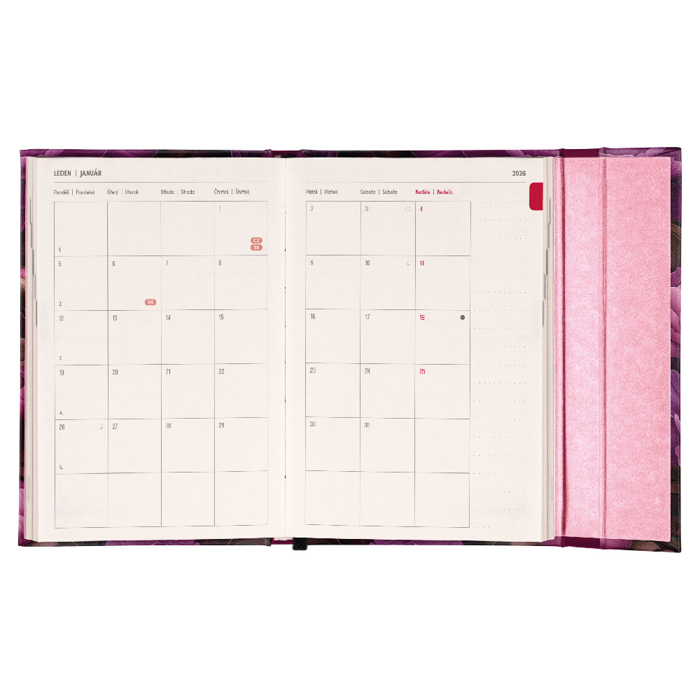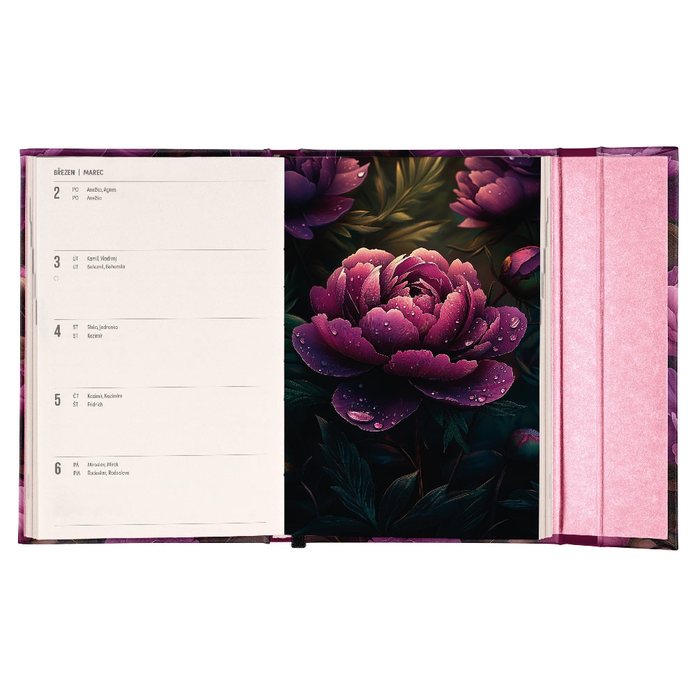 Týždenný magnetický diár 2026 B6 Fialová kvety