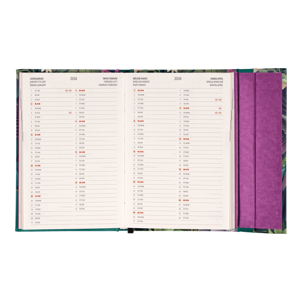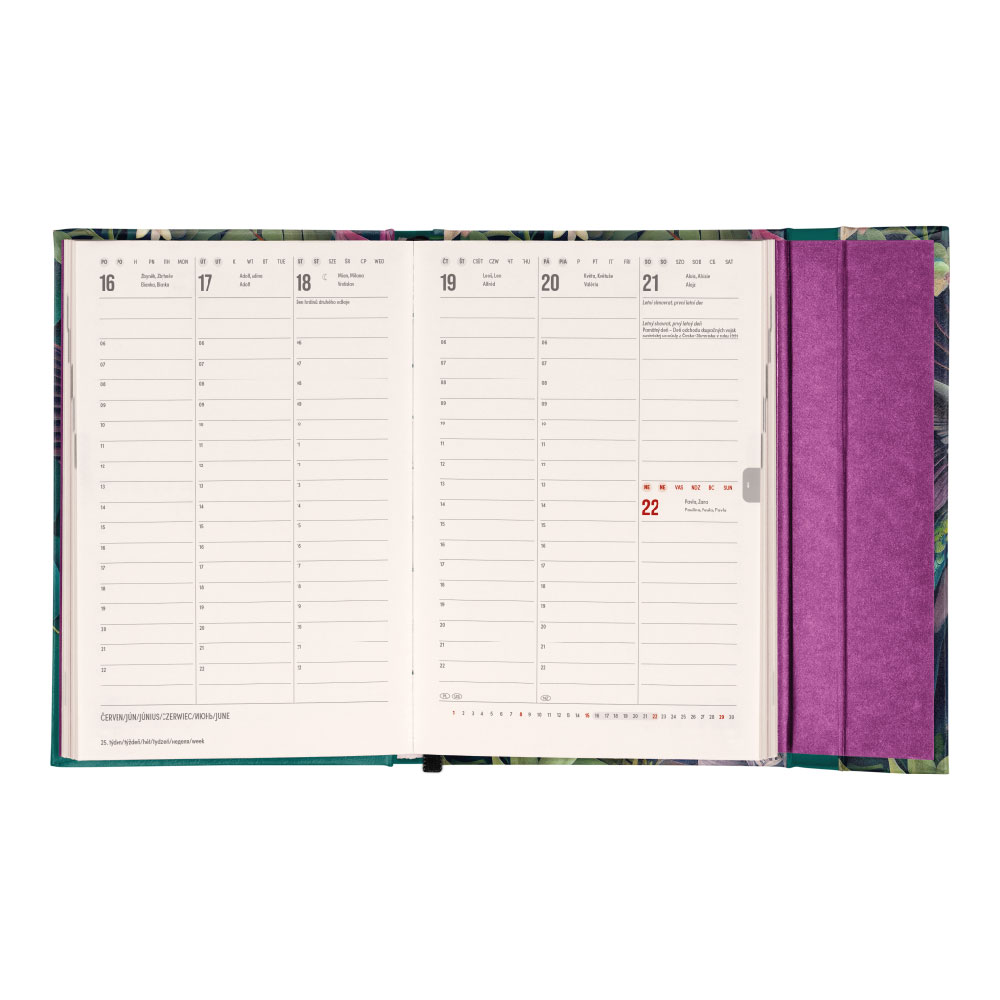 Súčasťou je záložka a vnútorné vrecko na navštívenky.