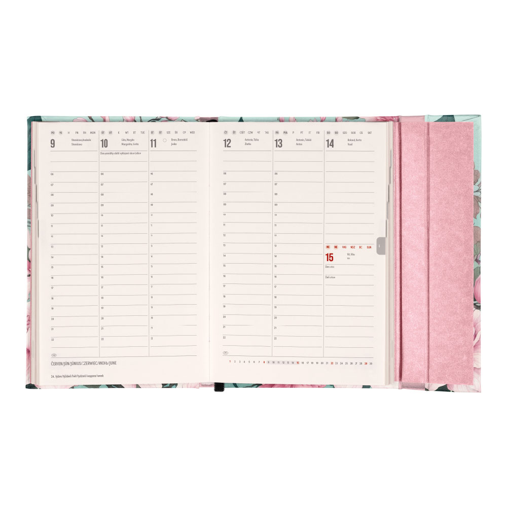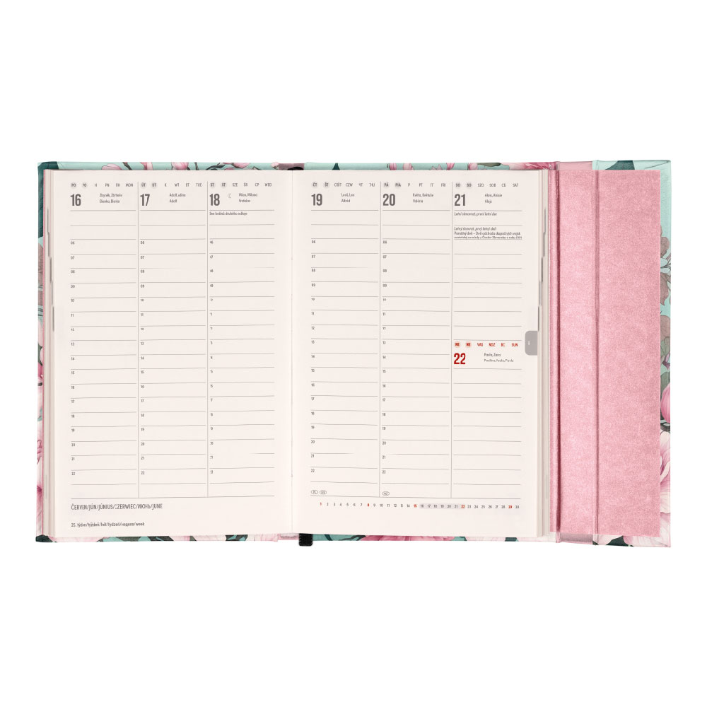 Súčasťou je záložka a vnútorné vrecko na navštívenky.