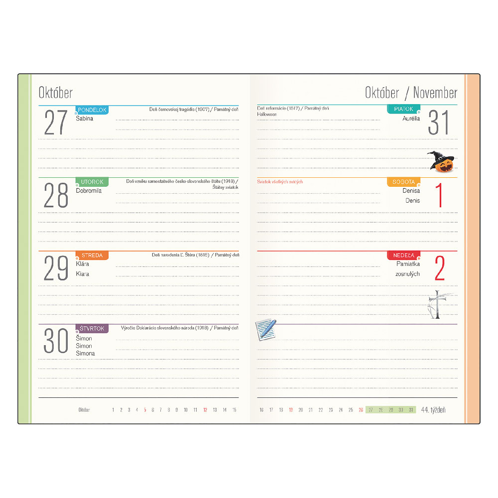 Obsahuje: rozvrh hodín, adresár, prehľad prázdnin, poznámky,