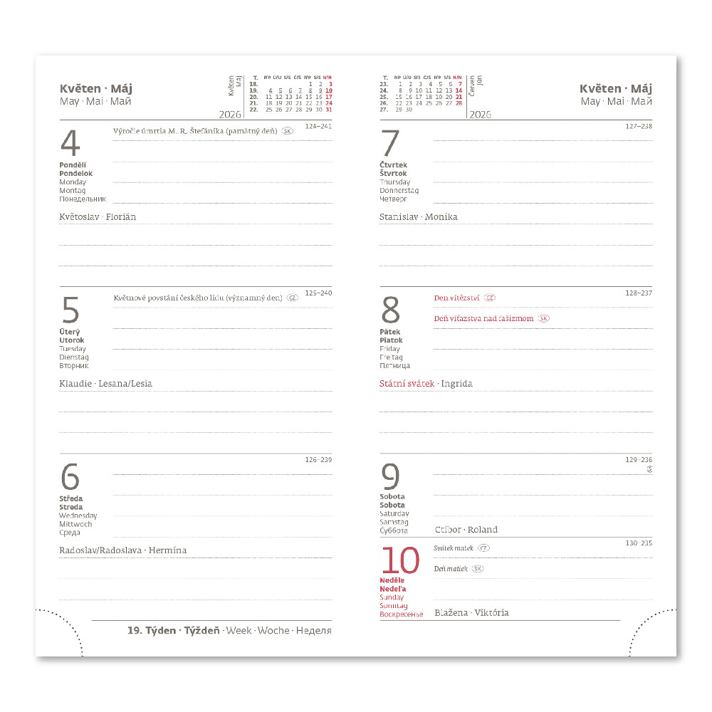 medzinárodné sviatky, ročný výhľad, týždenný layout, adresár.
