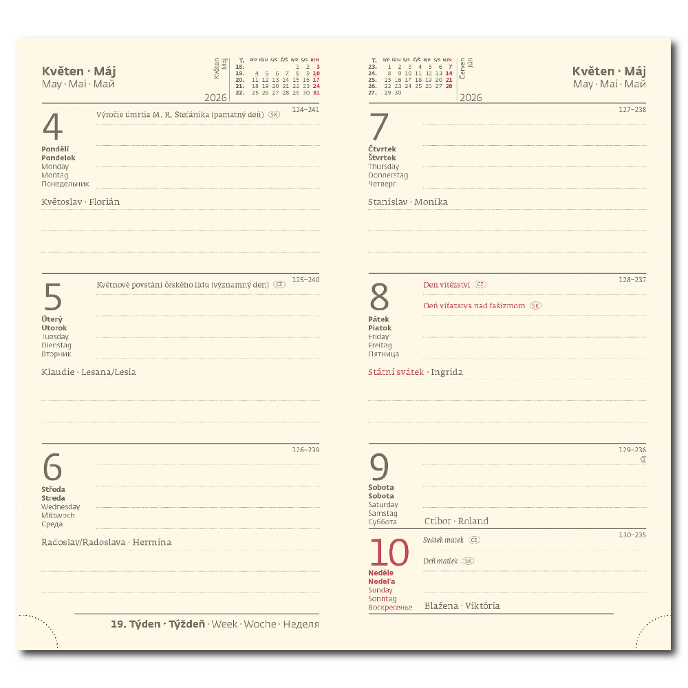 medzinárodné sviatky, ročný výhľad, týždenný layout, adresár.