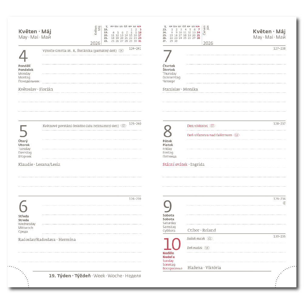 medzinárodné sviatky, ročný výhľad, týždenný layout, adresár.