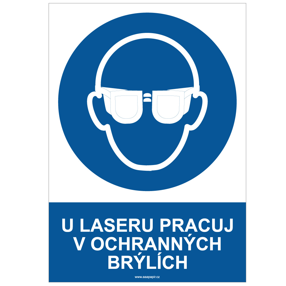 U LASERU PRACUJ V OCHRANNÝCH BRÝLÍCH - bezpečnostní tabulka, plast A4, 0,5 mm