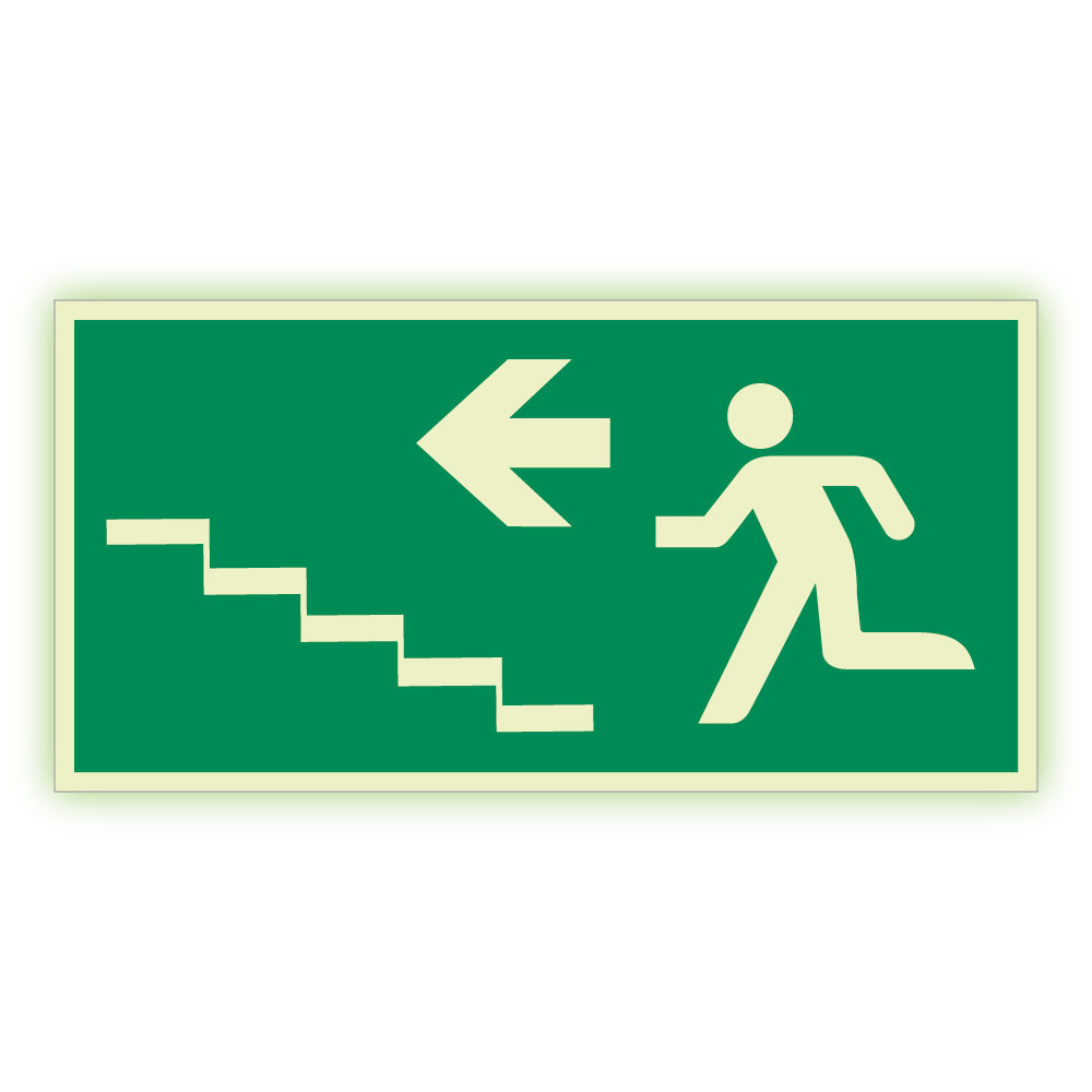 Únikové schodiště vlevo nahoru - fotoluminiscenční tabulka, samolepka 300x150 mm