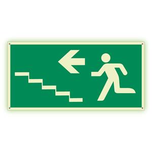 Únikové schodiště vlevo nahoru - fotoluminiscenční tabulka, plast 2 mm 300x150 mm