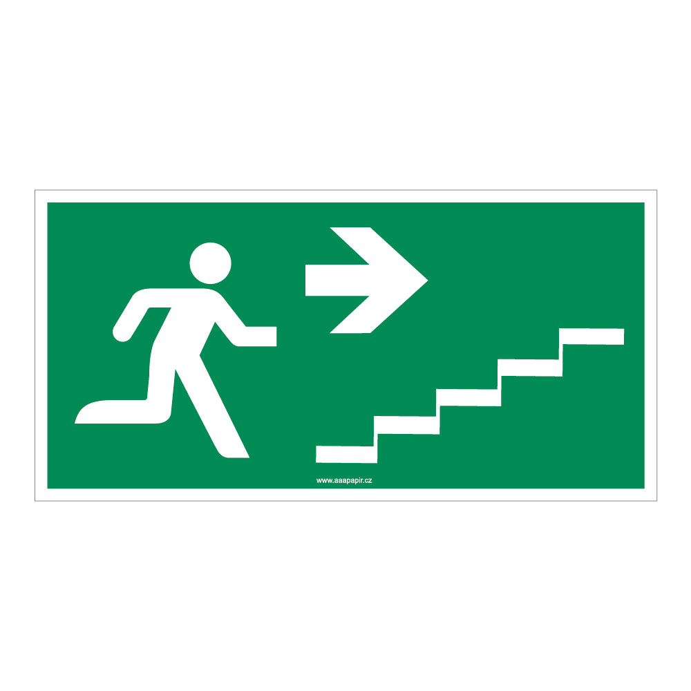 Únikové schodiště vpravo nahoru - bezpečnostní tabulka, samolepka 400x200 mm