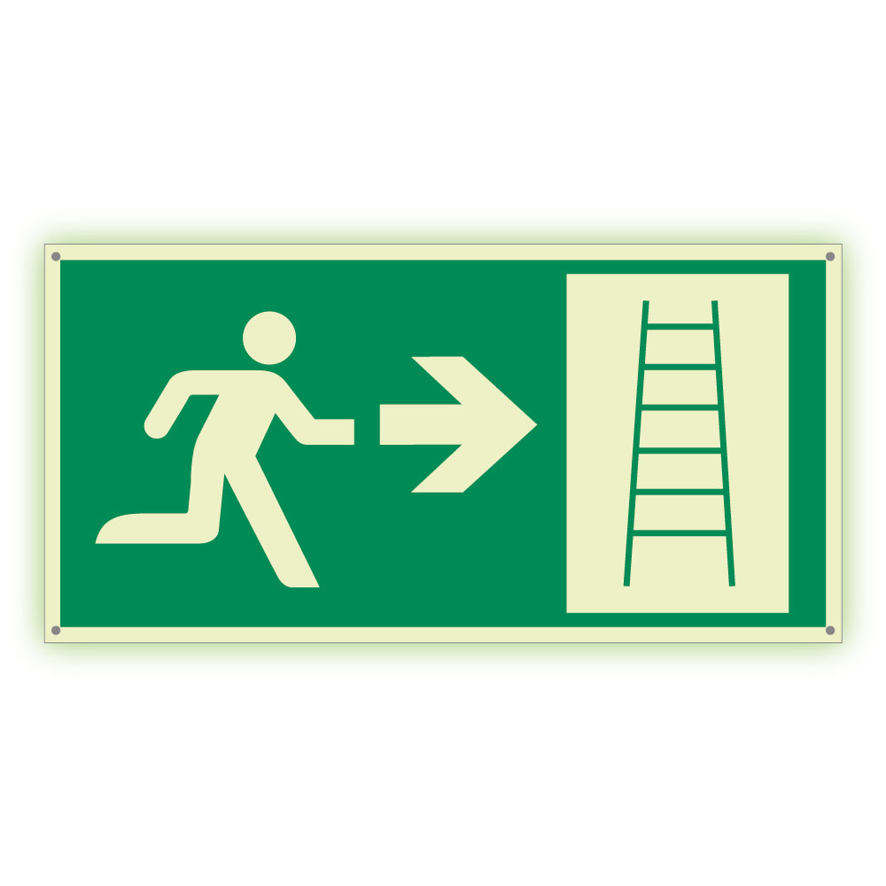 Únikový žebřík - směr vpravo - fotoluminiscenční tabulka, samolepka 300x150 mm