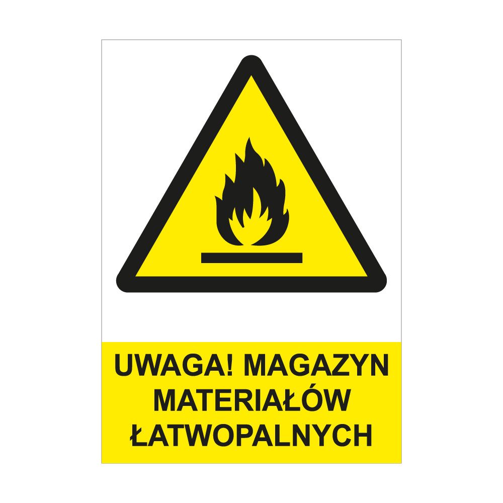 UWAGA! MAGAZYN MATERIAŁÓW ŁATWOPALNYCH - znak BHP, płyta PVC A4, 2 mm