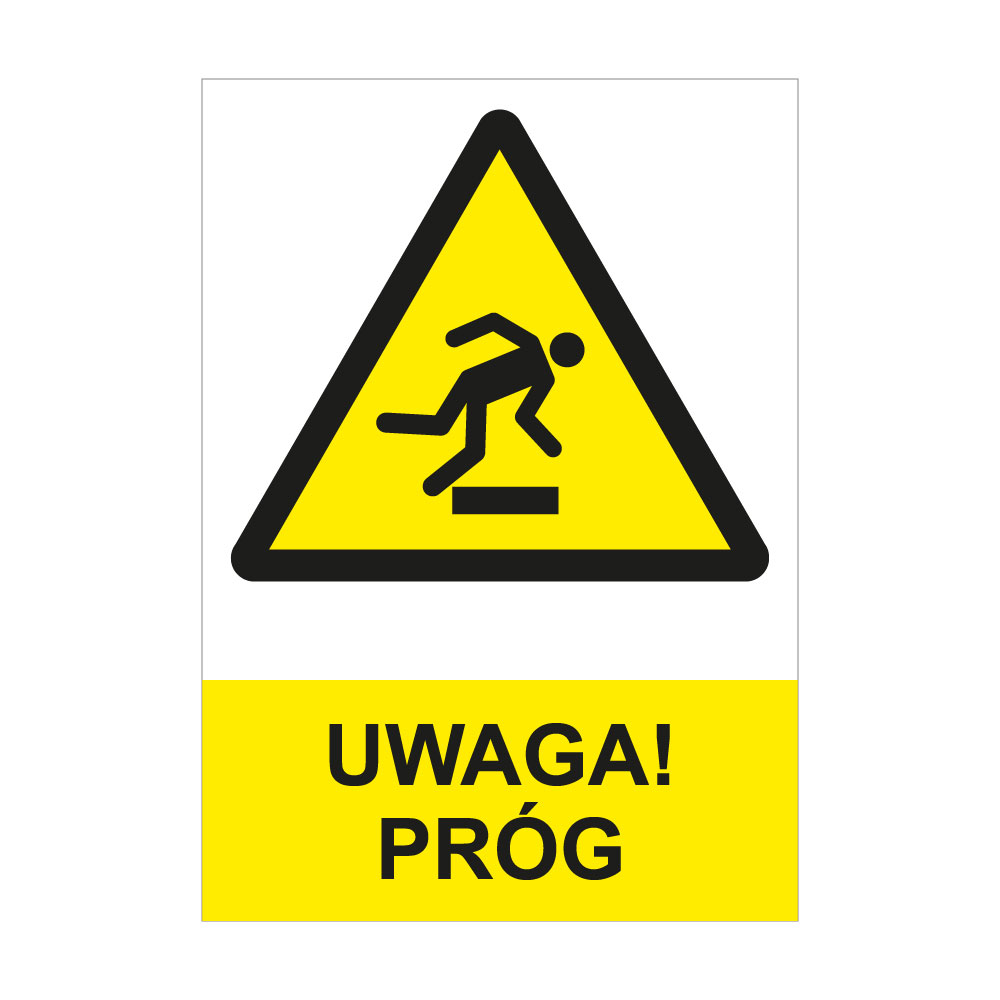 UWAGA! PRÓG - znak BHP, płyta PVC A4, 0,5 mm