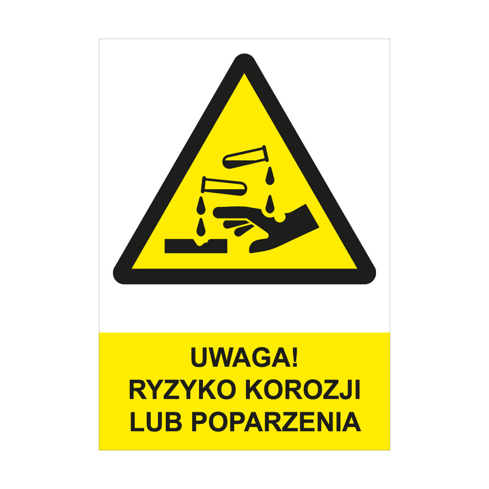 UWAGA! RYZYKO KOROZJI LUB POPARZENIA - znak BHP, płyta PVC A4, 2 mm