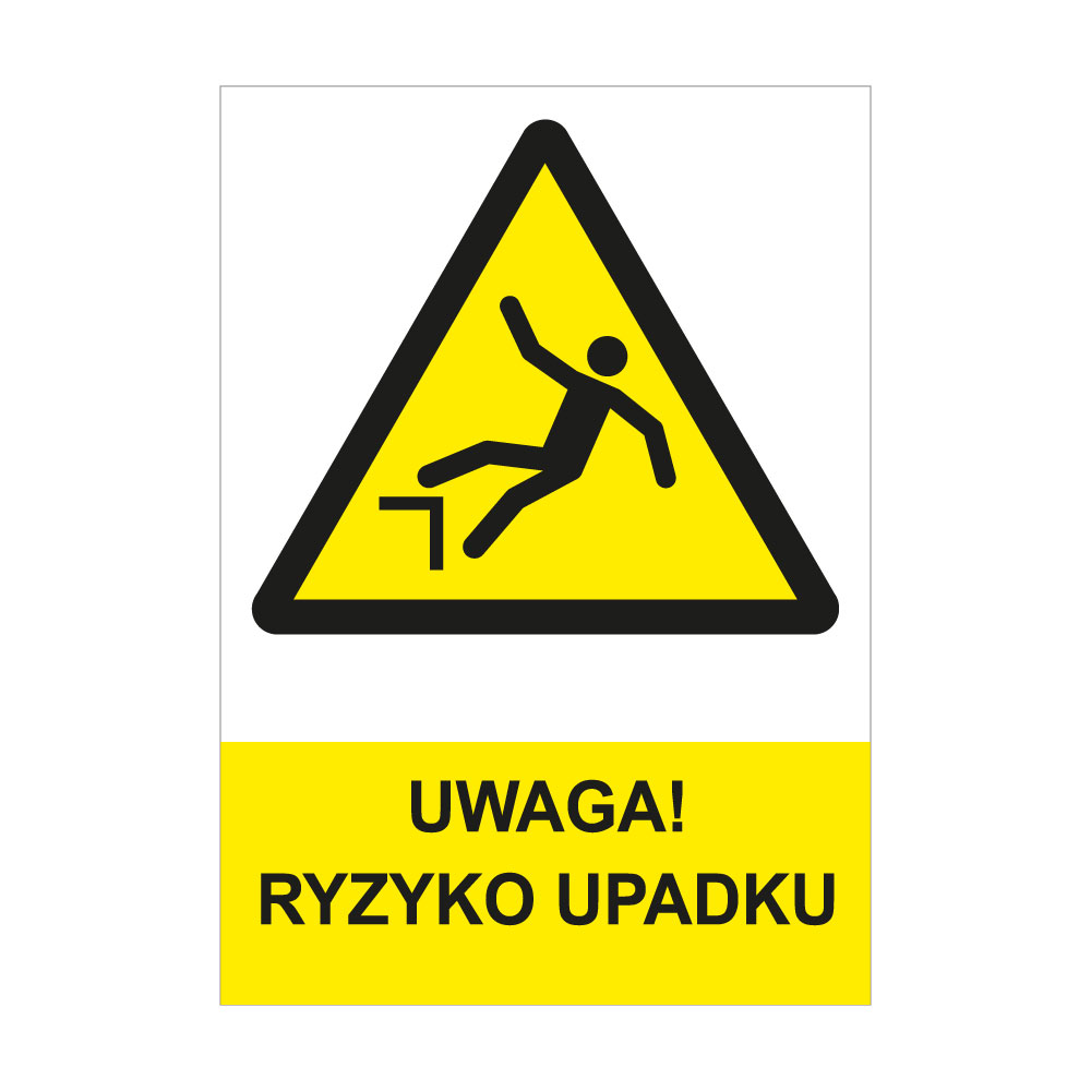 UWAGA! RYZYKO UPADKU - znak BHP, płyta PVC A4, 2 mm
