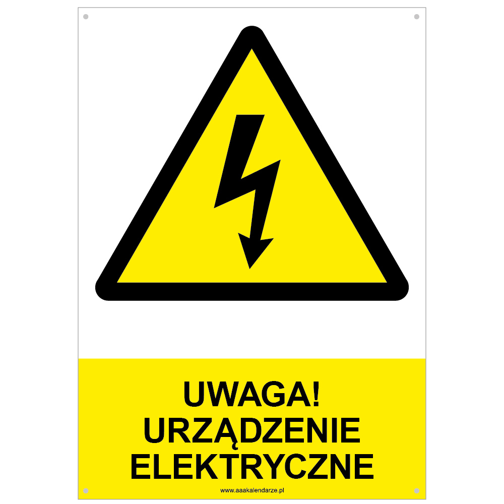 UWAGA! URZĄDZENIE ELEKTRYCZNE - znak BHP z dziurkami, płyta PVC A4, 2 mm