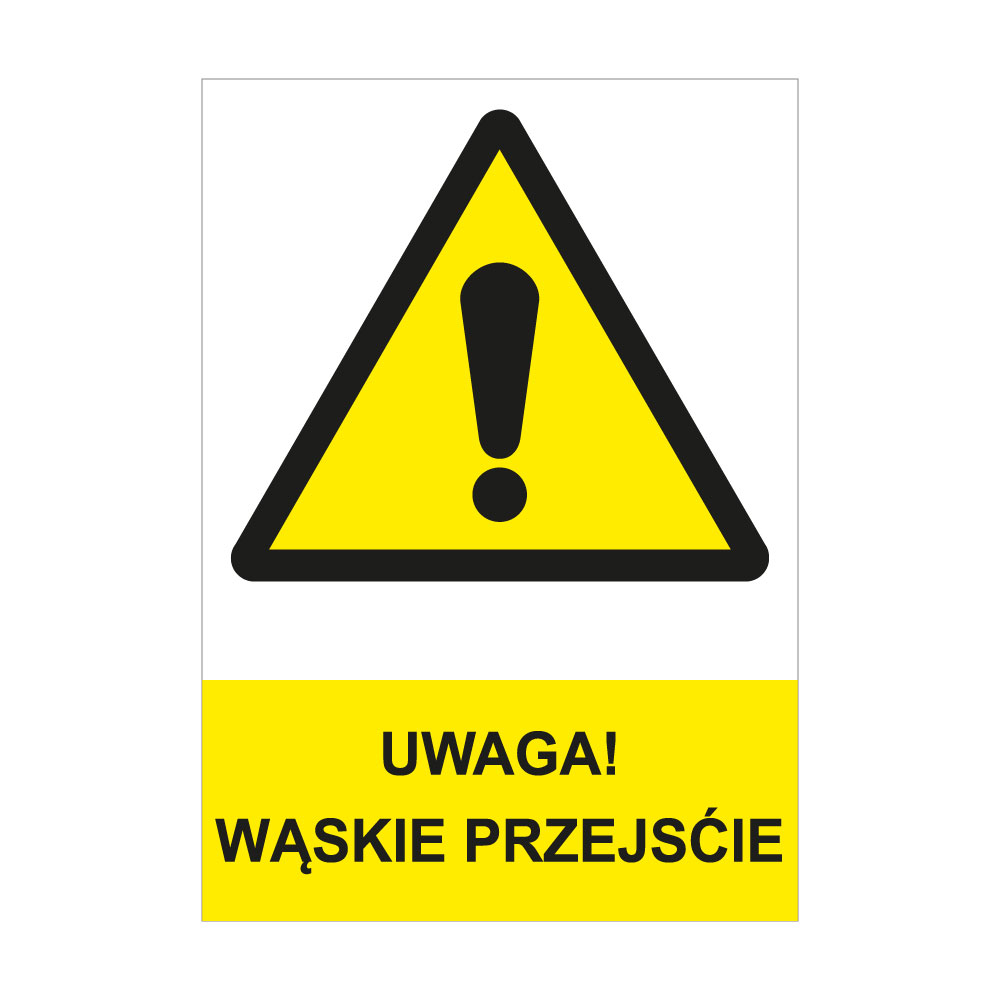 UWAGA! WĄSKIE PRZEJSĆIE - znak BHP, płyta PVC A4, 2 mm