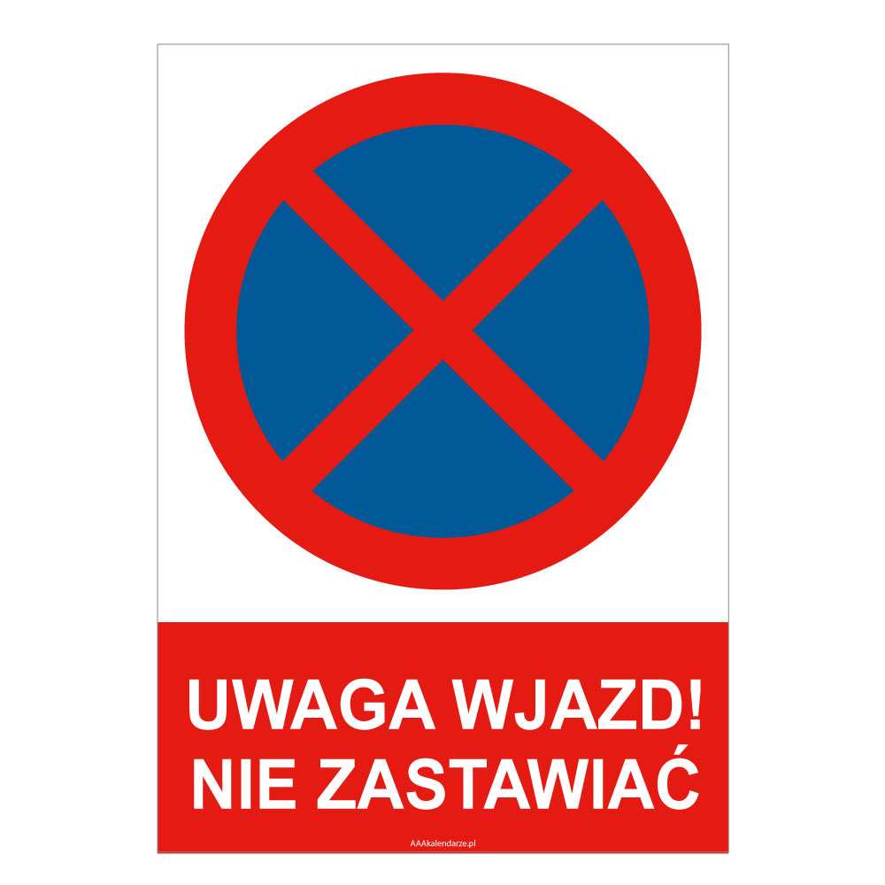 UWAGA WJAZD! NIE ZASTAWIAĆ - znak BHP, naklejka A4