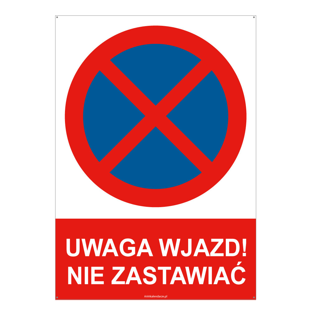 UWAGA WJAZD! NIE ZASTAWIAĆ - znak BHP z dziurkami, płyta PVC A4, 2 mm