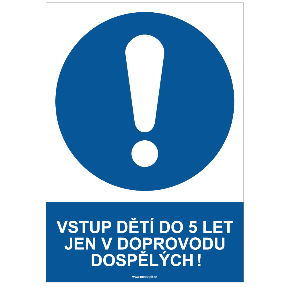 VSTUP DĚTÍ DO 5 LET JEN V DOPROVODU DOSPĚLÝCH! - bezpečnostní tabulka, samolepka A4
