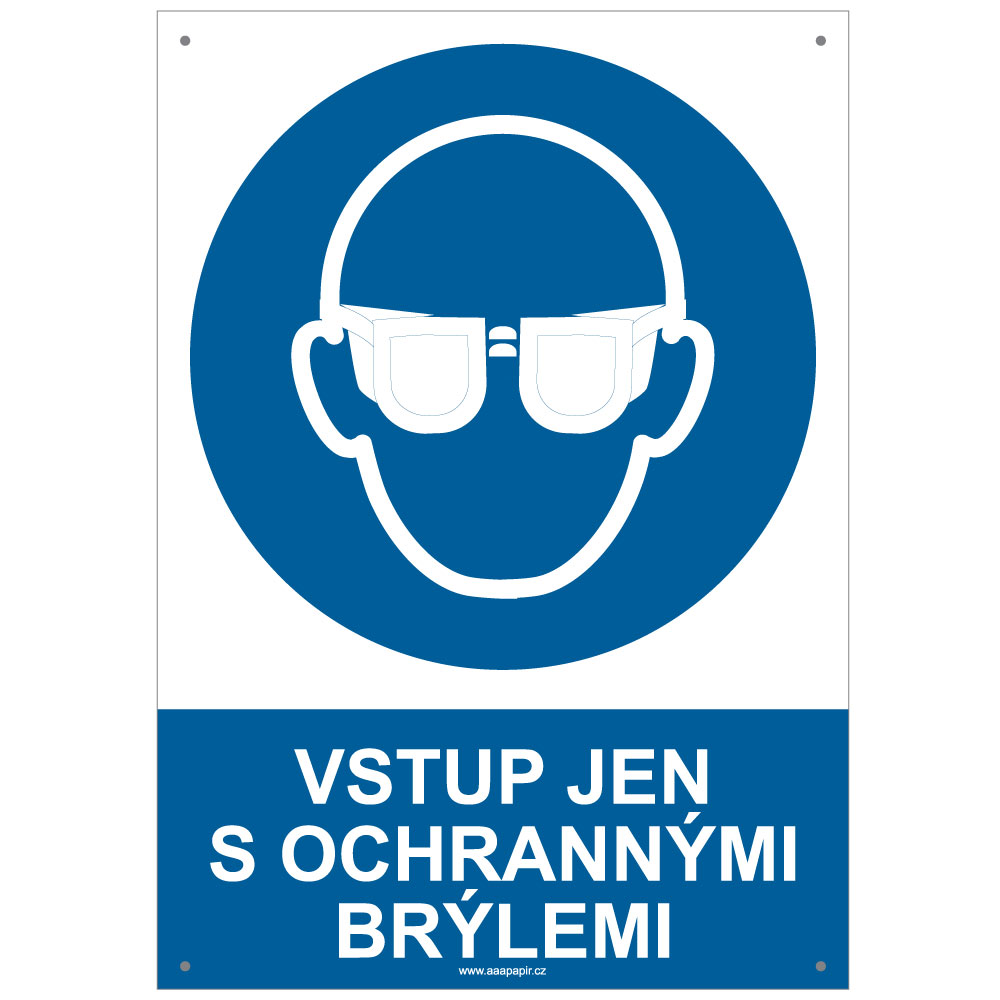 VSTUP JEN S OCHRANNÝMI BRÝLEMI - bezpečnostní tabulka s dírkami, plast A4, 2 mm