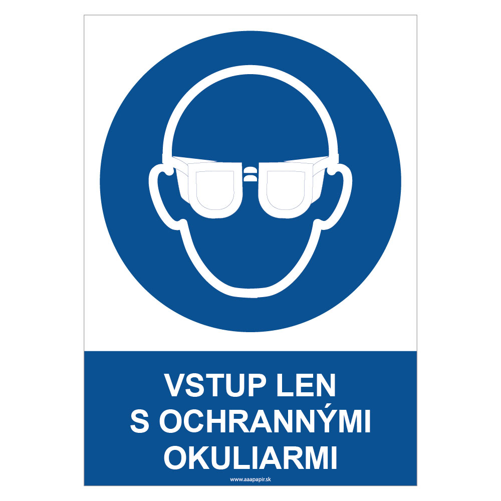 Vstup len s ochrannými okuliarmi - bezpečnostná tabuľka, samolepka A4