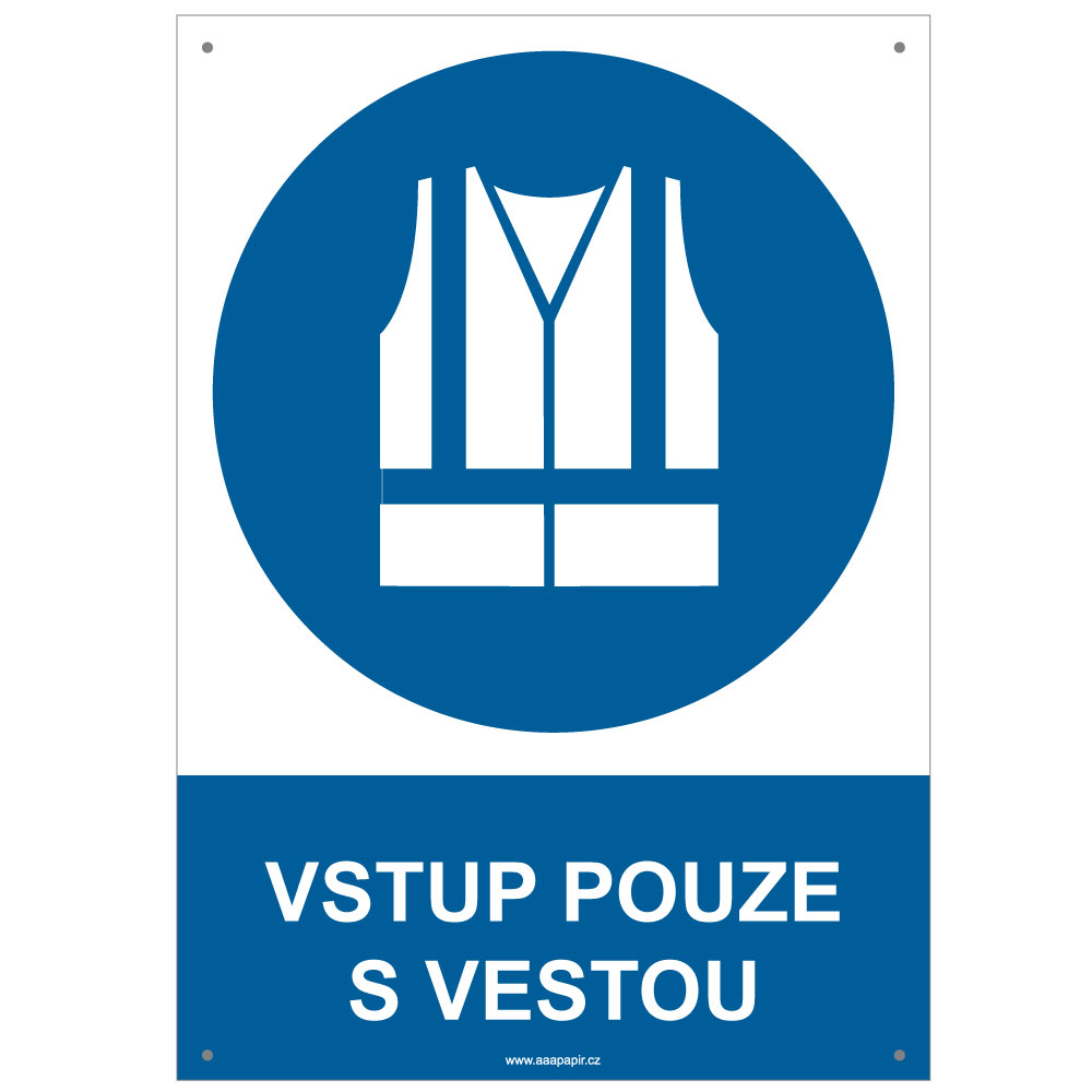 VSTUP POUZE S VESTOU - bezpečnostní tabulka s dírkami, plast A4, 2 mm