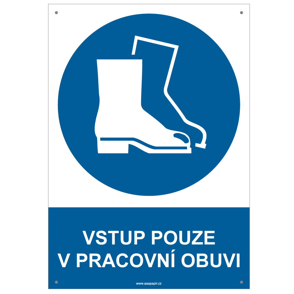 VSTUP POUZE V PRACOVNÍ OBUVI - bezpečnostní tabulka s dírkami, plast A4, 2 mm