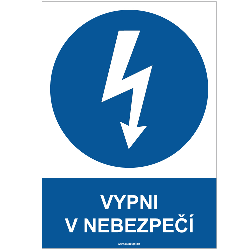 VYPNI V NEBEZPEČÍ - bezpečnostní tabulka, plast A4, 2 mm