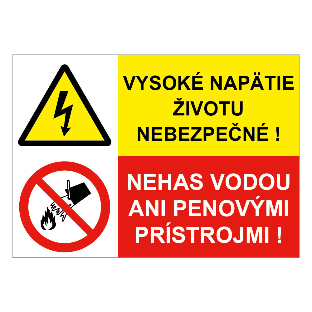 Vysoké napätie-Životu nebezpečné-Nehas vodou, kombinácia,plast 2mm,297x210mm