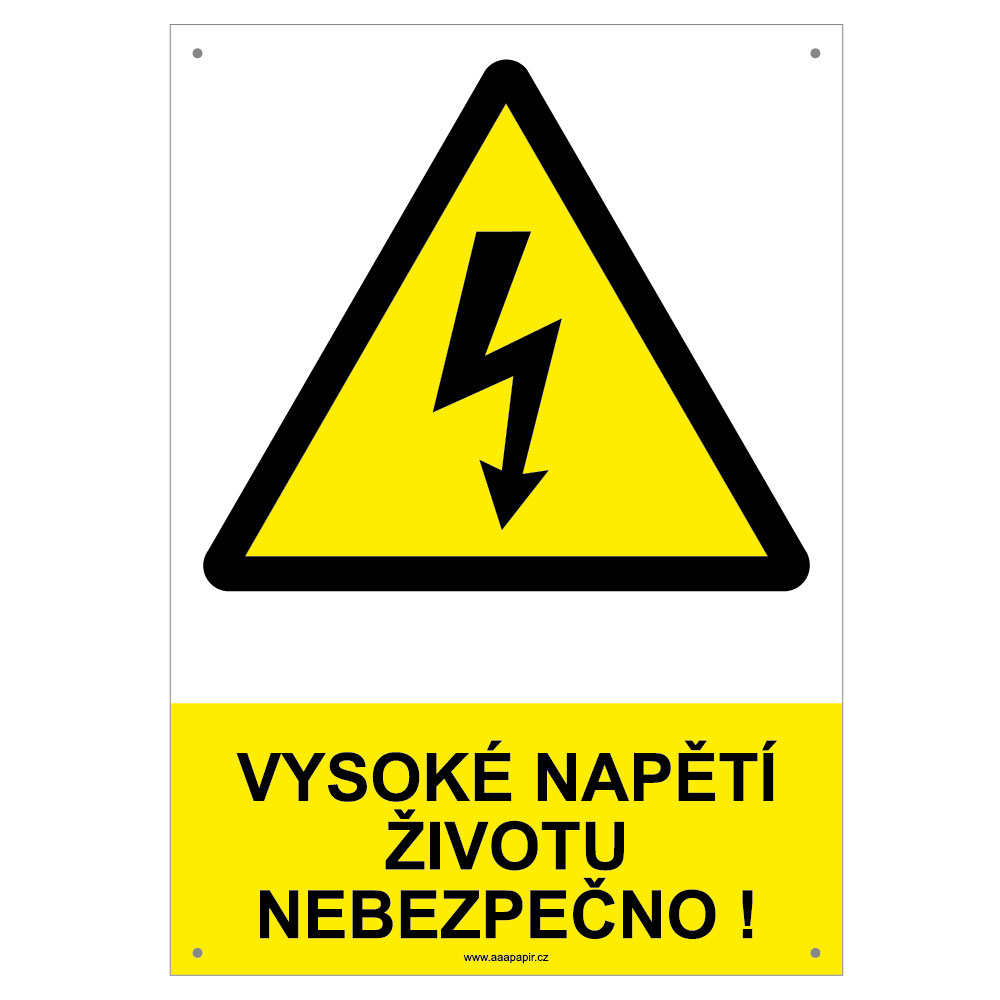 VYSOKÉ NAPĚTÍ ŽIVOTU NEBEZPEČNO ! - bezpečnostní tabulka s dírkami, plast A4, 2 mm