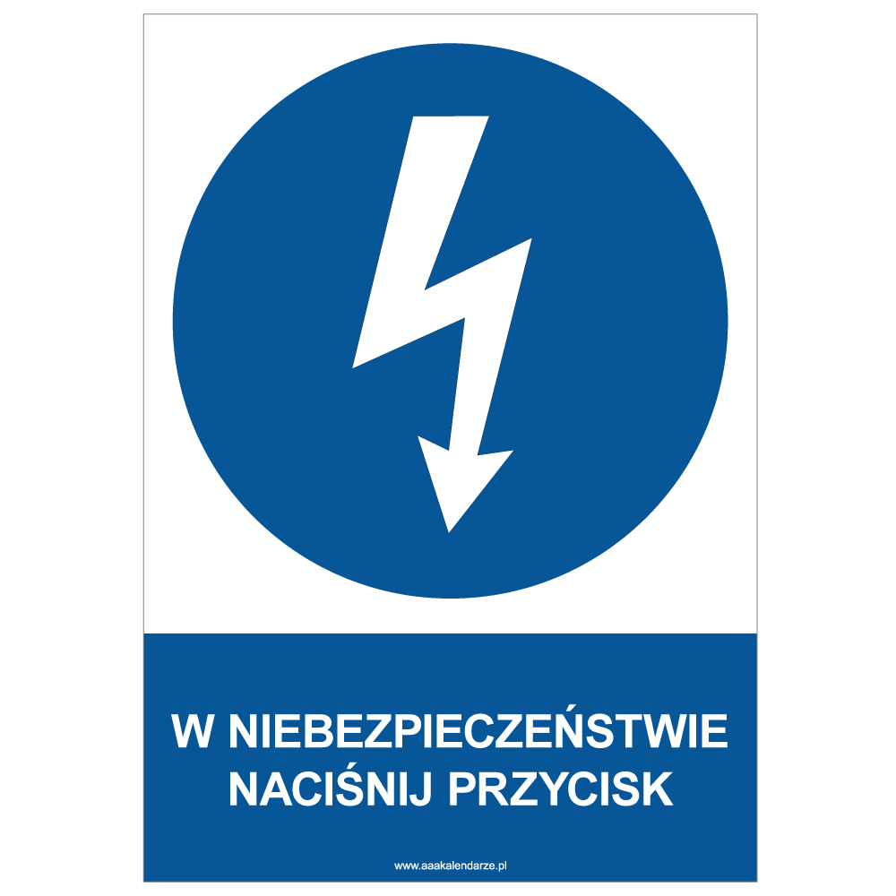 W NIEBEZPIECZEŃSTWIE NACIŚNIJ PRZYCISK - znak BHP, płyta PVC A4, 2 mm