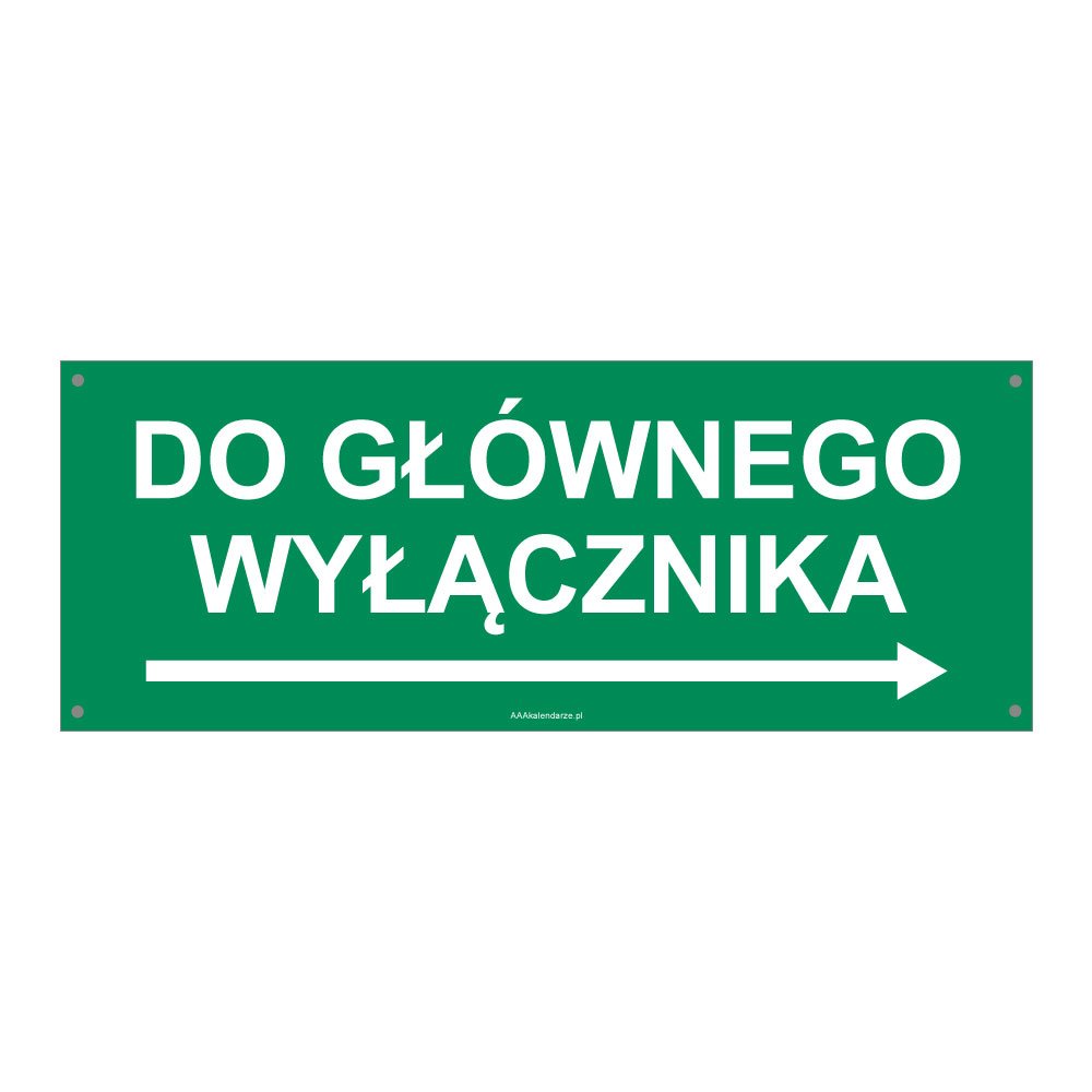 W PRAWO DO GŁÓWNEGO WYŁĄCZNIKA, płyta PVC 2 mm z dziurkami, 210x80 mm