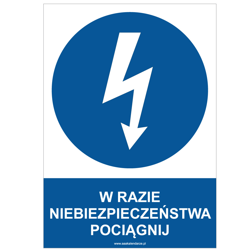 W RAZIE NIEBEZPIECZEŃSTWA POCIĄGNIJ - znak BHP, płyta PVC A4, 2 mm