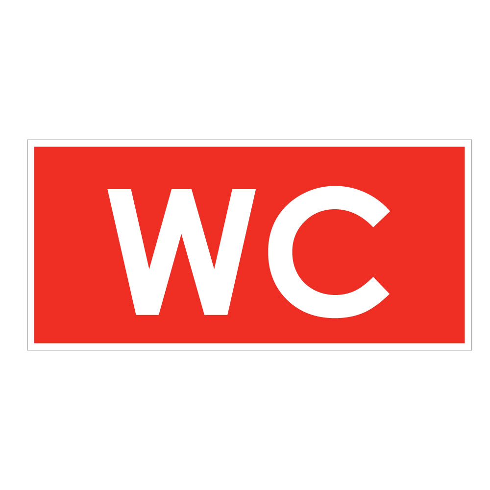 WC - OZNAČENÍ TOALETY, červená, samolepka, 190x90 mm