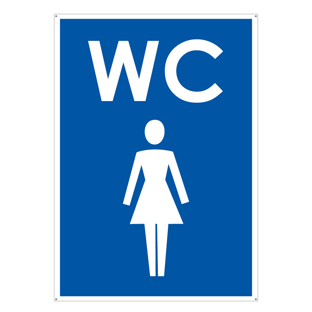 WC ŽENY, modrá, plast s dírami 2 mm 105x148 mm