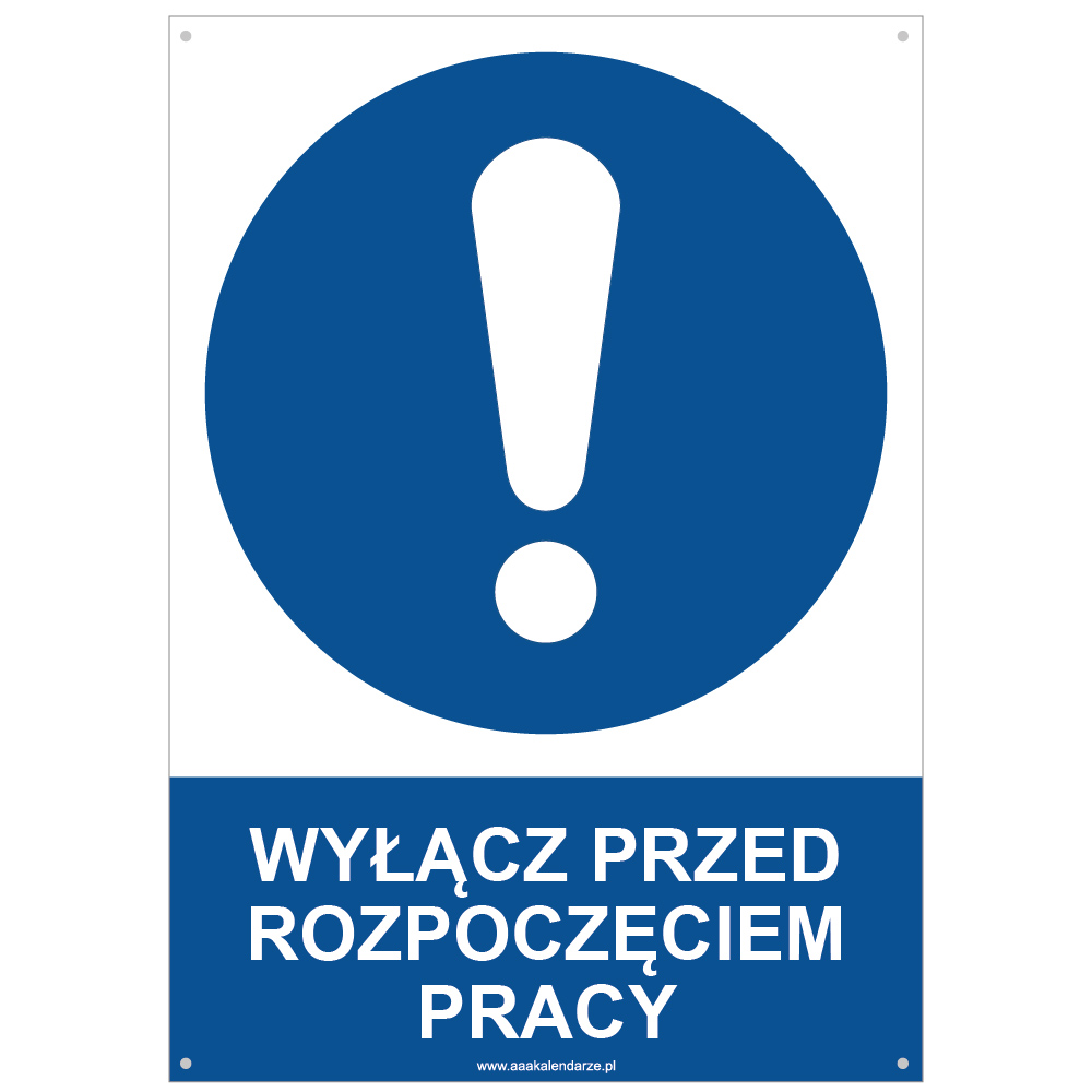 WYŁĄCZ PRZED ROZPOCZĘCIEM PRACY - znak BHP z dziurkami, płyta PVC A4, 2 mm