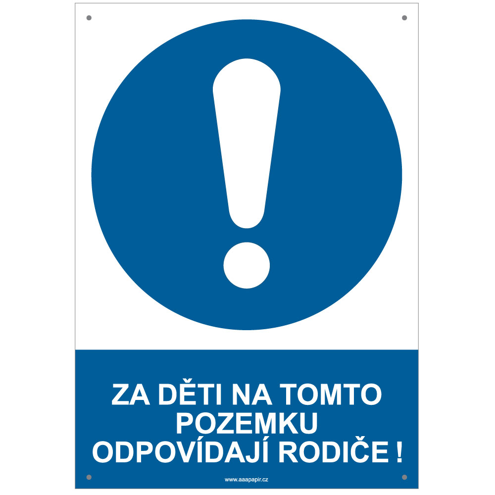 ZA DĚTI NA TOMTO POZEMKU ODPOVÍDAJÍ RODIČE! - bezpečnostní tabulka, plast A4, 2 mm