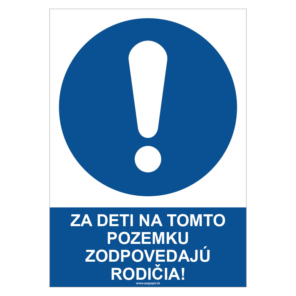 Za deti na tomto pozemku zodpovedajú rodičia! - bezpečnostná tabuľka, plast 0,5 mm - A4