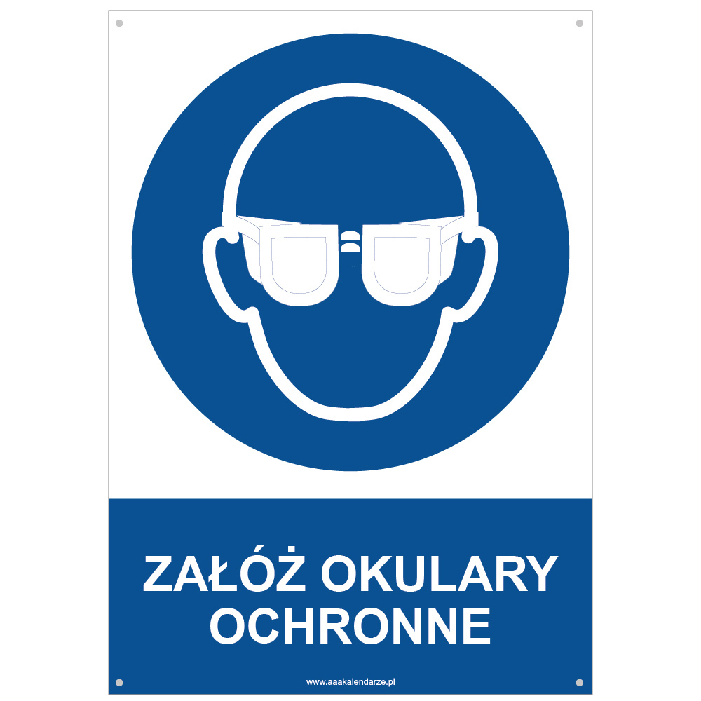 ZAŁÓŻ OKULARY OCHRONNE - znak BHP z dziurkami, płyta PVC A4, 2 mm