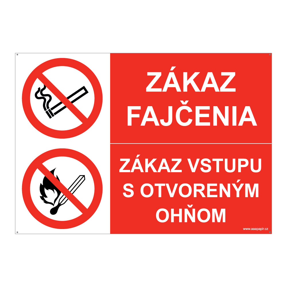 Zákaz fajčenia-Zákaz vstupu s otvoreným ohňom, kombinácia, plast 2mm s dierkami-297x210mm