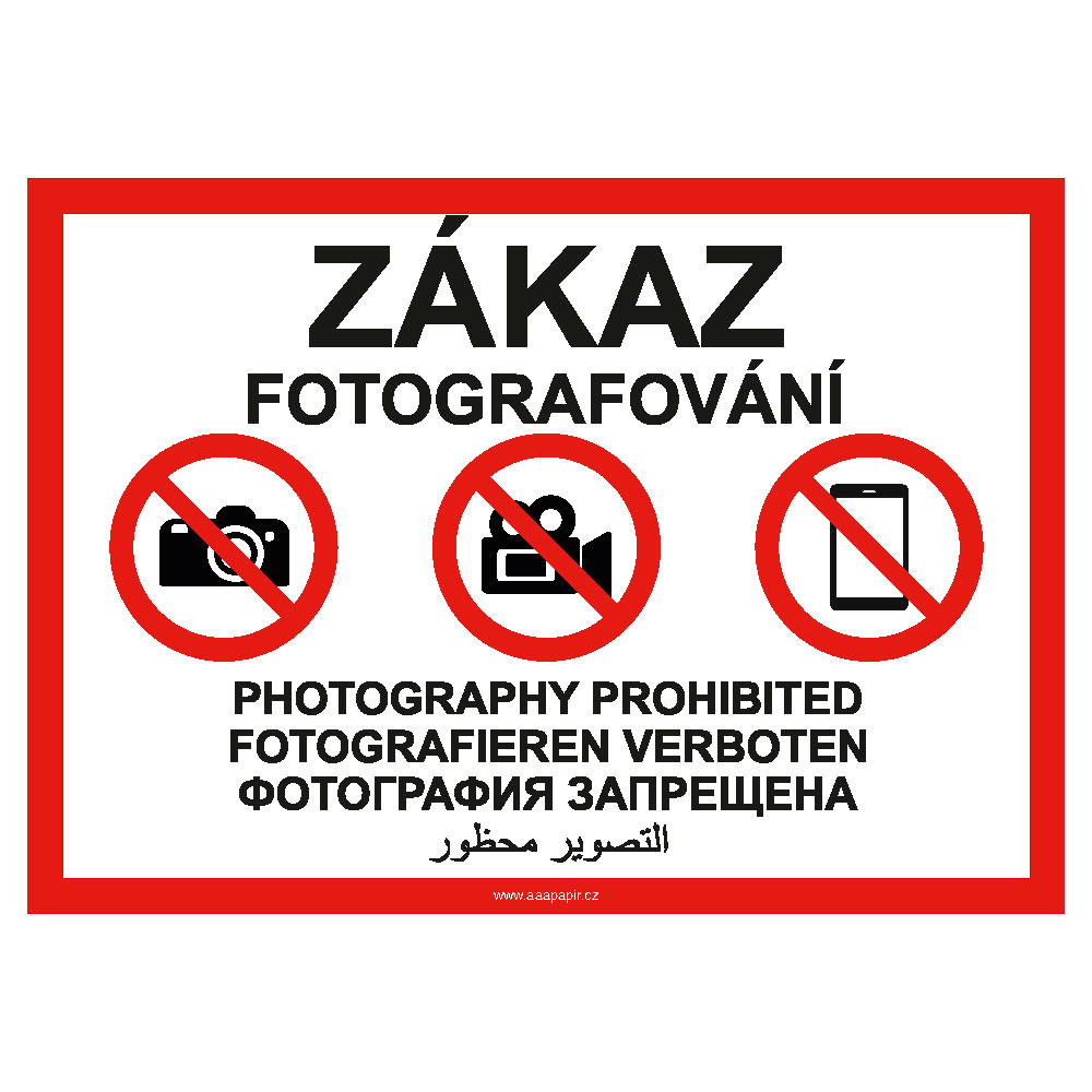 Zákaz fotografování - bezpečnostní tabulka, plast A4, 0,5 mm