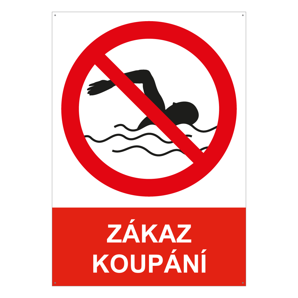 ZÁKAZ KOUPÁNÍ - bezpečnostní tabulka s dírkami, plast A4, 2 mm