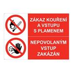 ZÁKAZ KOUŘENÍ A VSTUPU S PLAMENEM - NEPOVOLANÝM VSTUP ZAKÁZÁN, KOMBINACE, plast 1 mm, A5