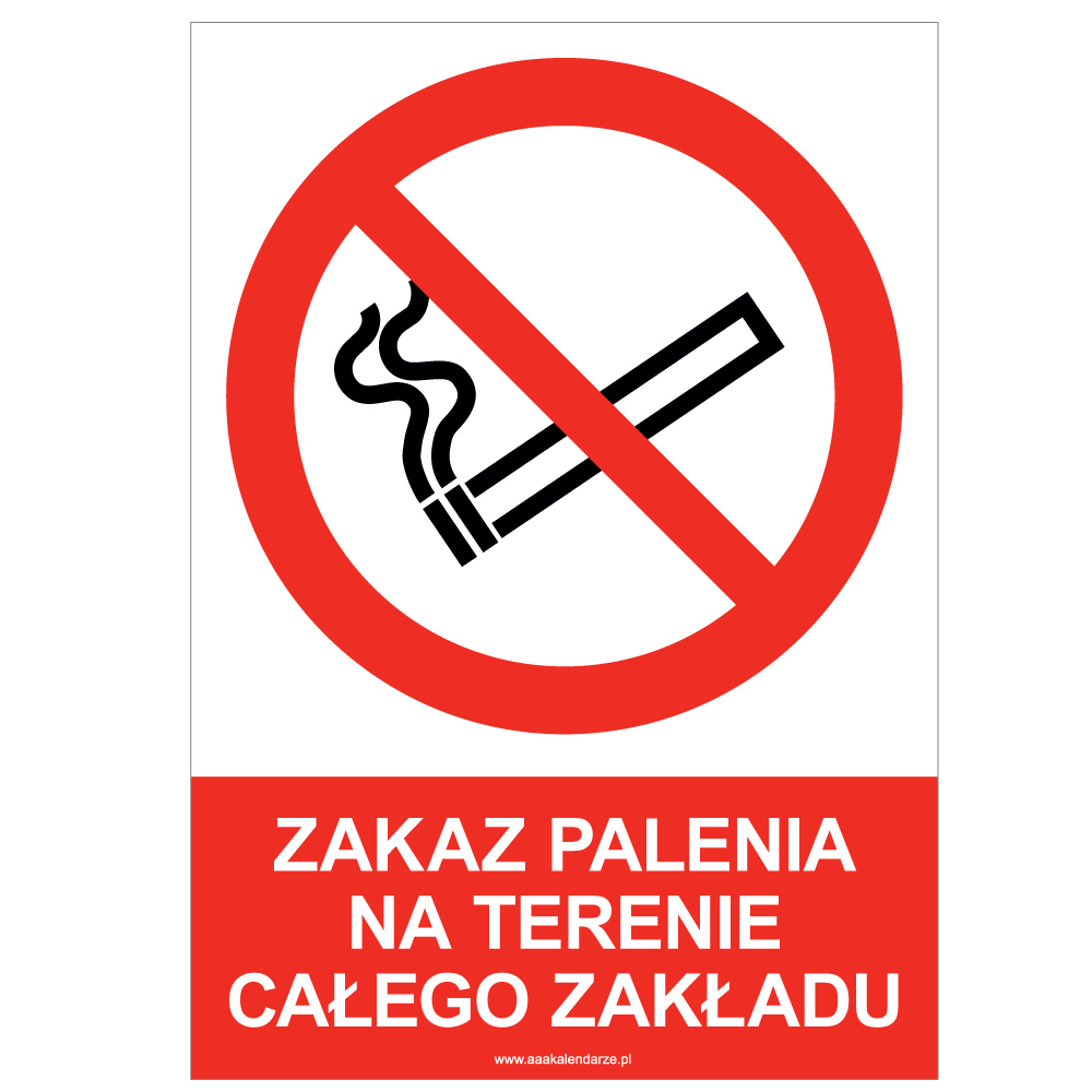 ZAKAZ PALENIA NA TERENIE CAŁEGO ZAKŁADU - znak BHP, naklejka A4