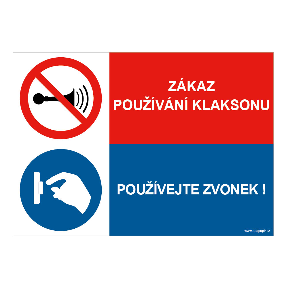 ZÁKAZ POUŽÍVÁNÍ KLAKSONU - POUŽÍVEJTE ZVONEK, KOMBINACE, plast 2 mm s dírkami A4