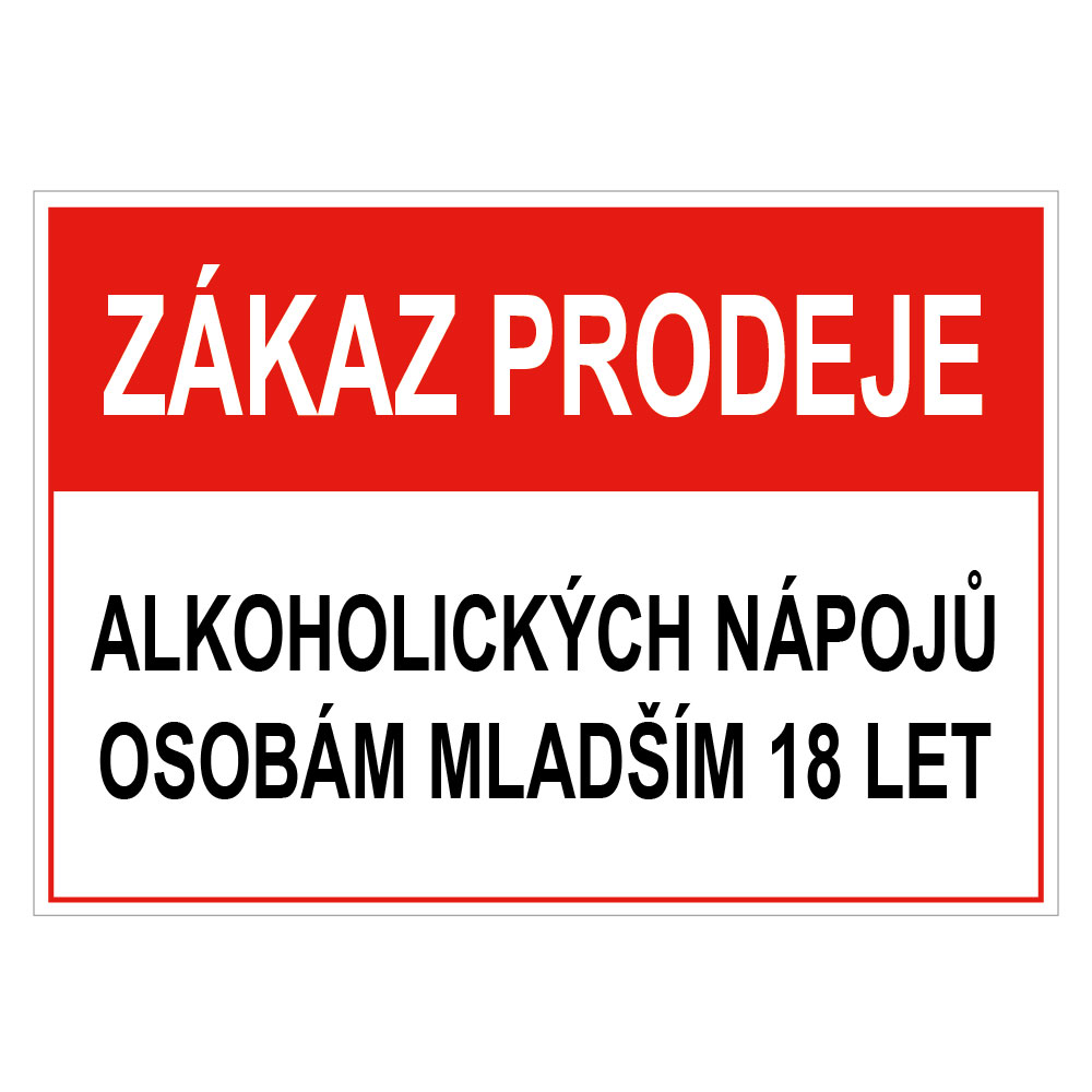 Zákaz prodeje alk. nápojů mladším 18let - bezpečnostní tabulka, plast 0,5 mm, A4