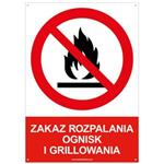 ZAKAZ ROZPALANIA OGNISK I GRILLOWANIA - znak BHP, płyta PVC A5, 2 mm