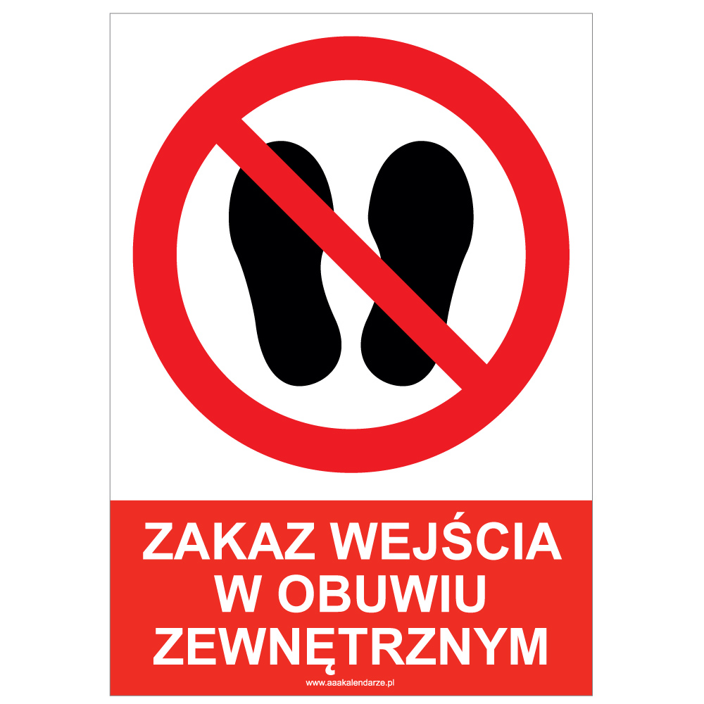 ZAKAZ WEJŚCIA W OBUWIU ZEWNĘTRZNYM - znak BHP, płyta PVC A4, 0,5 mm