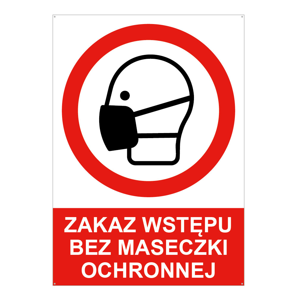 ZAKAZ WSTĘPU BEZ MASECZKI OCHRONNEJ - znak BHP z dziurkami, 2 mm płyta PVC A4
